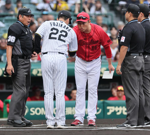 この首位攻防の3連戦は、因縁の対決でもありました。4月20日に甲子園で行われた前回の対戦では、広島の岡本駿投手(22)が阪神の坂本誠志郎捕手(31)に頭部死球を与え、藤川監督がベンチから飛び出す騒ぎもありました。両チームの選手が入り乱れ、あわや乱闘に発展しかねない状況に。審判は試合を警告し、岡本投手は危険球で退場。このカードはそれ以来の対戦でした。