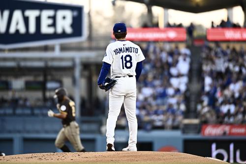 ドジャース山本由伸投手(26)が、ヒヤリとするアクシデントに見舞われた。0-1の4回無死、先頭アラエスが放った83・5マイル(約134キロ)のピッチャーライナーが、右膝付近を直撃。打球は大きく弾み、結果的には二ゴロとなった。山本は痛がるそぶりは見せなかったが、ベンチからデーブ・ロバーツ監督(53)やトレーナーらが駆けつけた。山本は状態を確認すると、投球練習を行いプレーを続行した。2死からシーツを一ゴロに打ち取ると、通常通り一塁ベースカバーにも入った。今季は試合前時点で14試合に登板して6勝5敗、防御率はリーグ6位の2・64。前回登板は13日(同14日)のジャイアンツ戦で、4回2/3を6安打2本塁打で5失点と精彩を欠いた。白星を挙げれば、5月26日(同27日)のガーディアンズ戦以来、24日ぶりとなる。【ライブ速報はこちら】――>>大谷翔平「1番DH」でパドレス戦 先発は山本由伸 ドジャース―パドレス